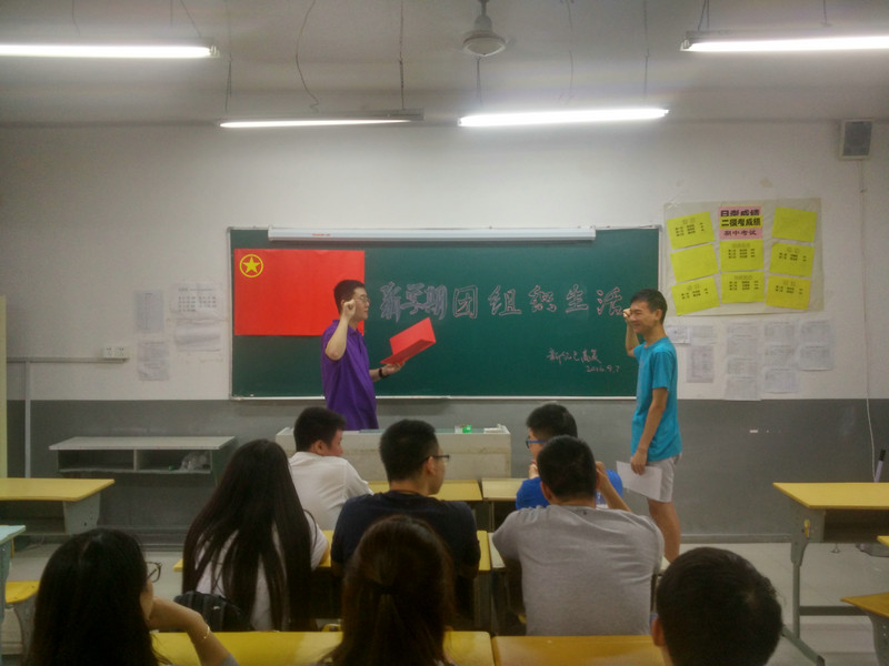 8月29日上午,中复二班教室中,黑板上悬挂着鲜红的团旗,学校全日制中复班吴加群同学,进行了新团员举行了入团宣誓仪式。学院党支部沈慧老师,团委书记周颢老师,团支部书记和下一届高复班入团积极分子出席了宣誓仪式。
