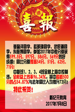 中复班一、二、三、四班全部上高中控制线 超过540分的同学占54.87%