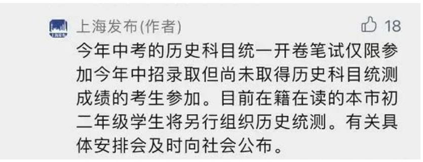 换而言之,这次的上海历史考试仅限制于中考复读生、返沪生等非应届初三毕业生。考试形式仍然采取开卷形式,计入中考分值为60分,其中平时分30分,考试分30分。
