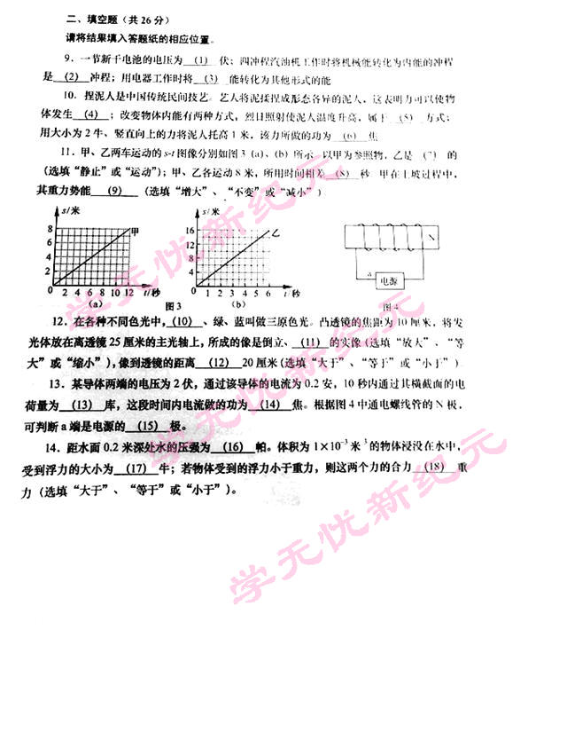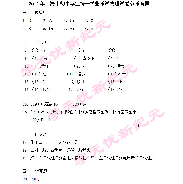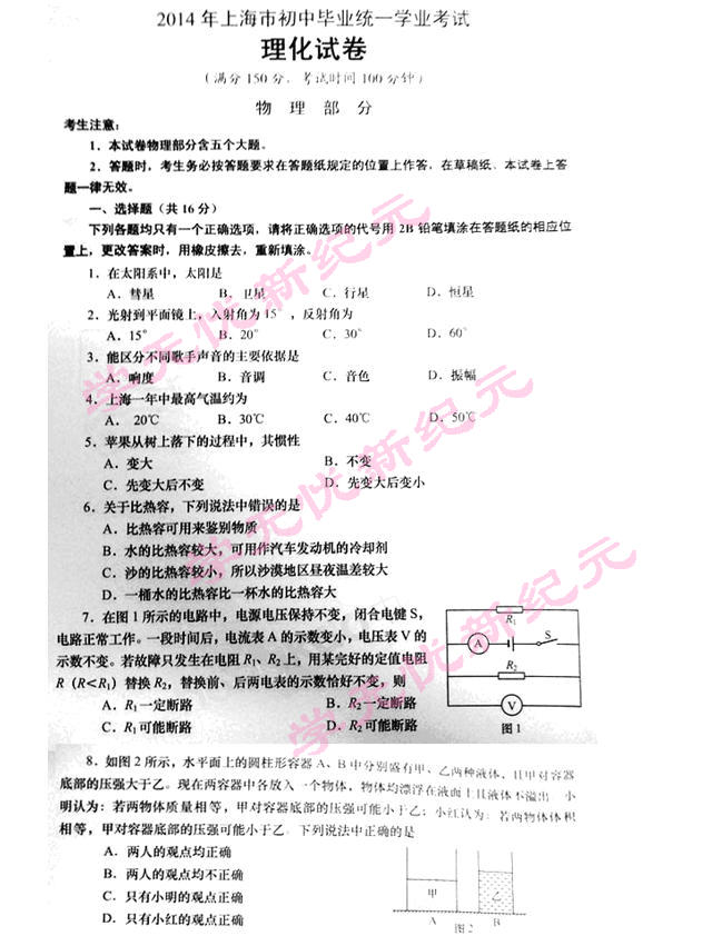 下一条:2014年上海市初中毕业统一学业考试化学试卷