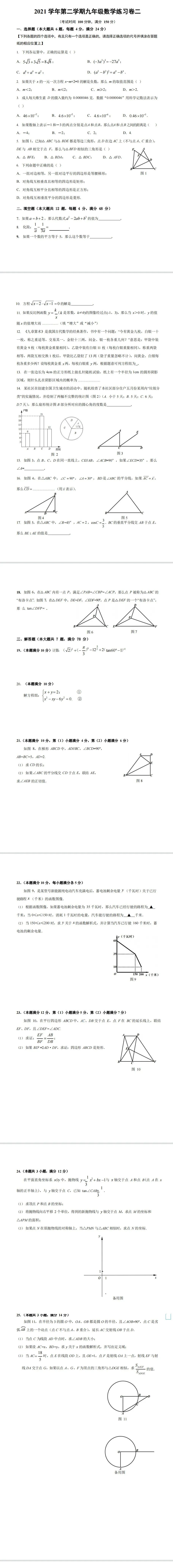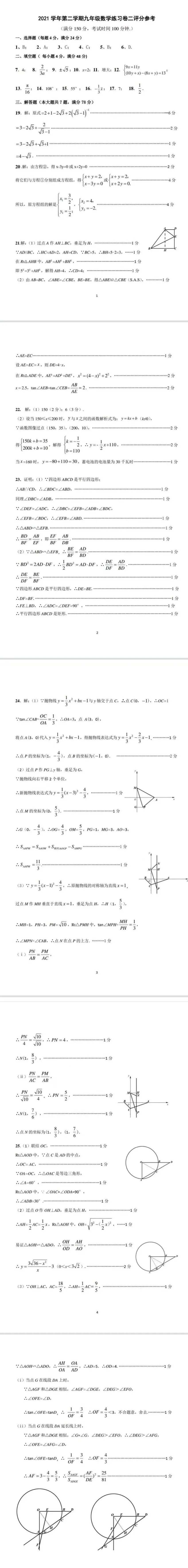 2022年上海市宝山区初三中考二模数学卷(含答案)